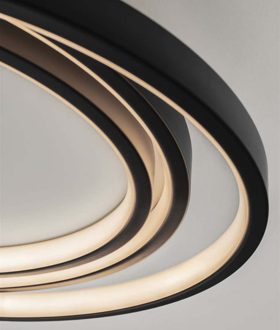 NL Arbir Matt Black Aluminium & Acrylic 3 Ring Semi Flush Ceiling Light Large - ID 13796.