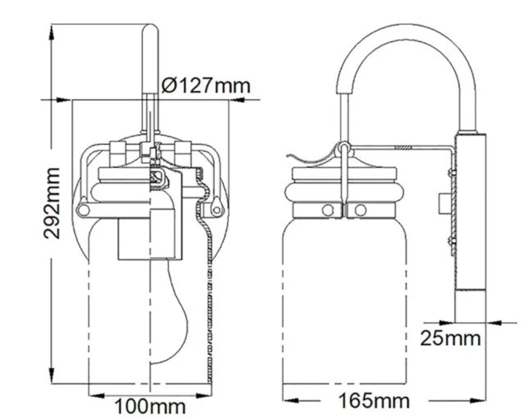 Fitting Height 292mm x Width 127mm x Projection 159mm