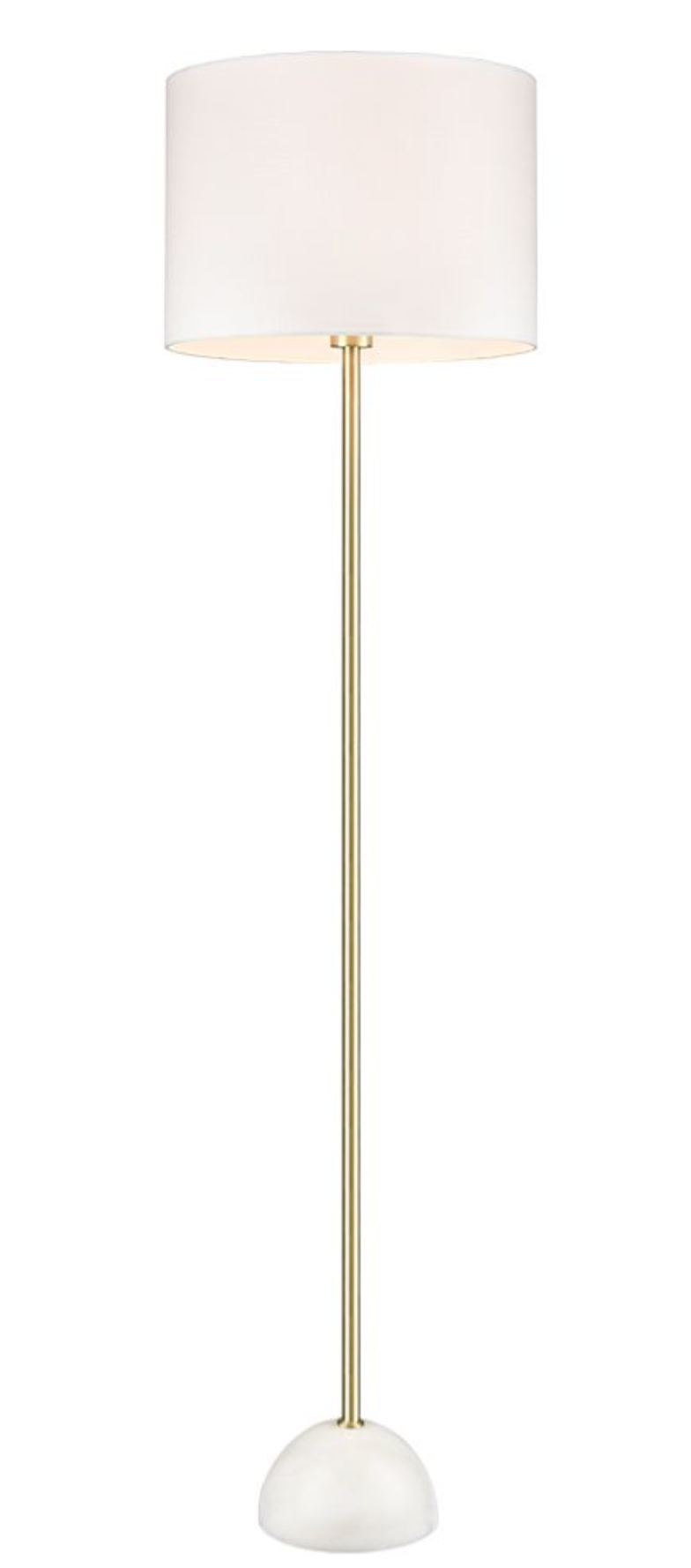 Brok Satin Brass Floor Light With Off White Fabric Shade & White Marble Base - ID 13736