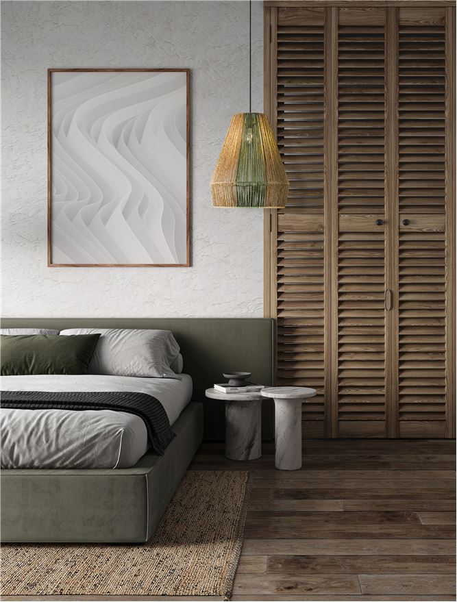 A Natural, organic pendant green rope detail and a smart Sandy black steal conical ceiling rose.