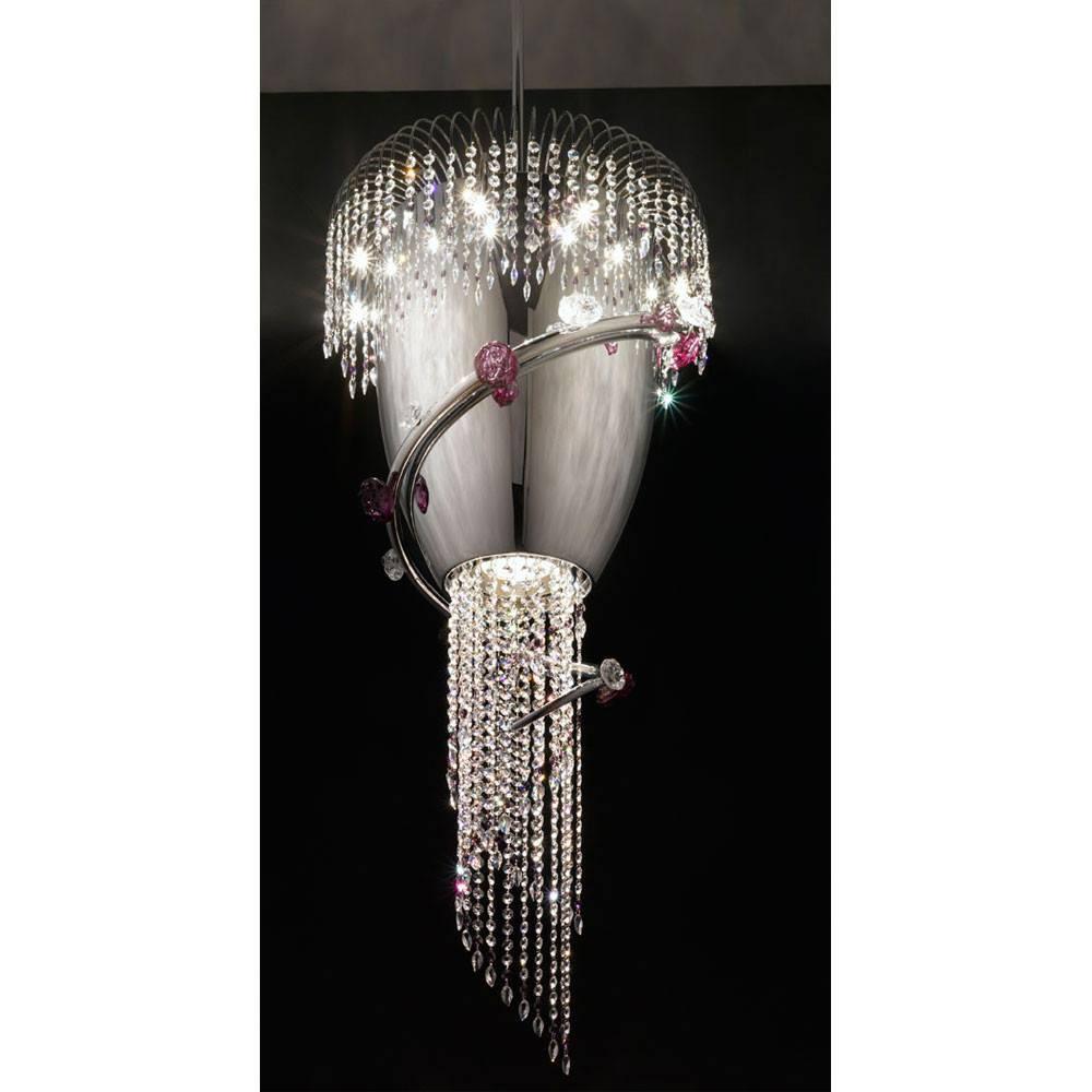 Discreet luxury and refined style are represented by combinations of light gold finish with amber and chrome finish with amethyst, all flooded with light as with dual ignition, donating charm and sensuality to the environment.