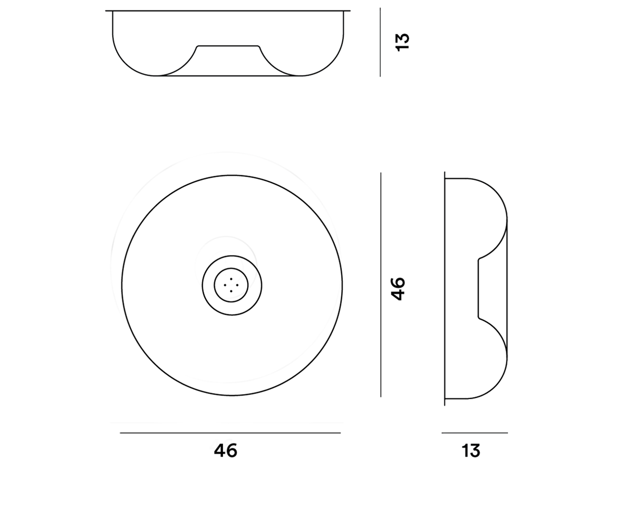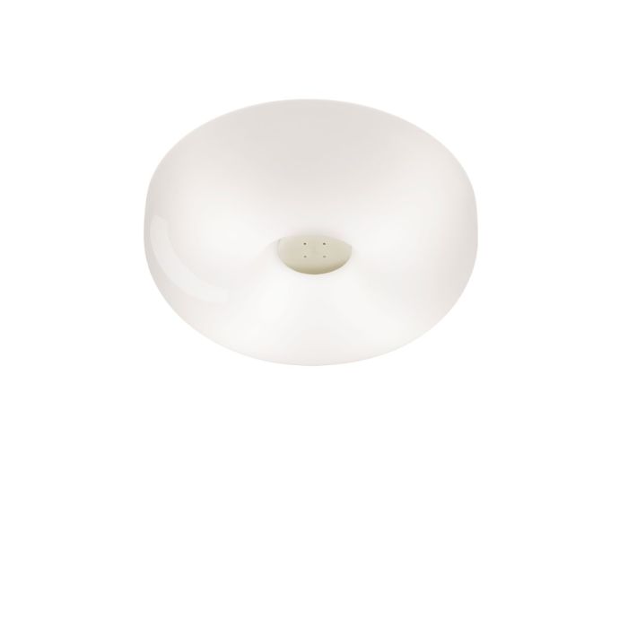 A soft volume in glossy blown glass fastened by a brushed metal button placed at the central opening. The form is always timely, to enhance spaces with a simple, balanced image, underscored by the intense, uniform brightness.