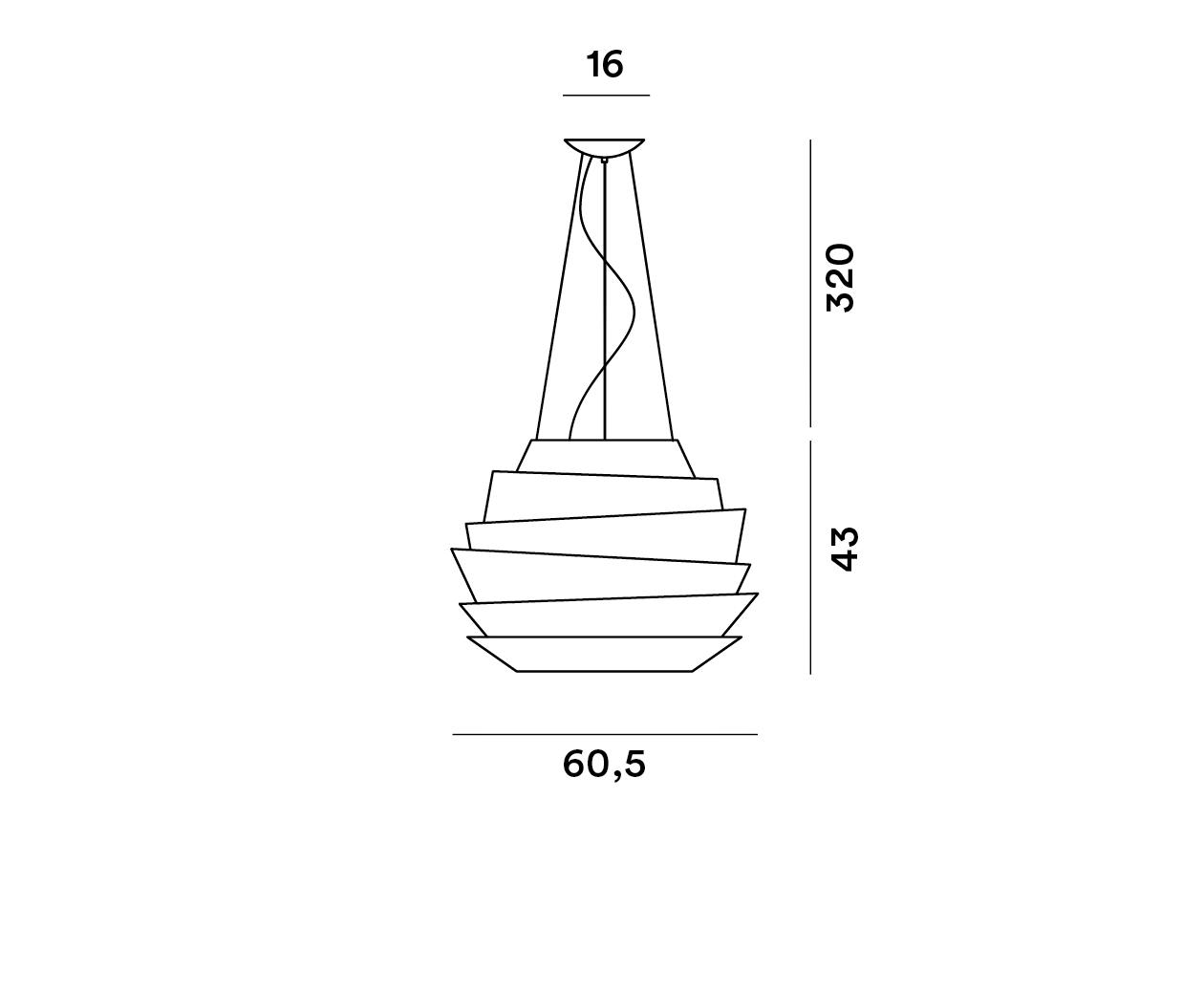 A suspended work of architecture, suggesting the profile of the Guggenheim Museum in New York. The irregular bands add dynamism to the volume and make its image differ depending on the vantage point, in a unique game of reflected and diffused light. A true focal point.