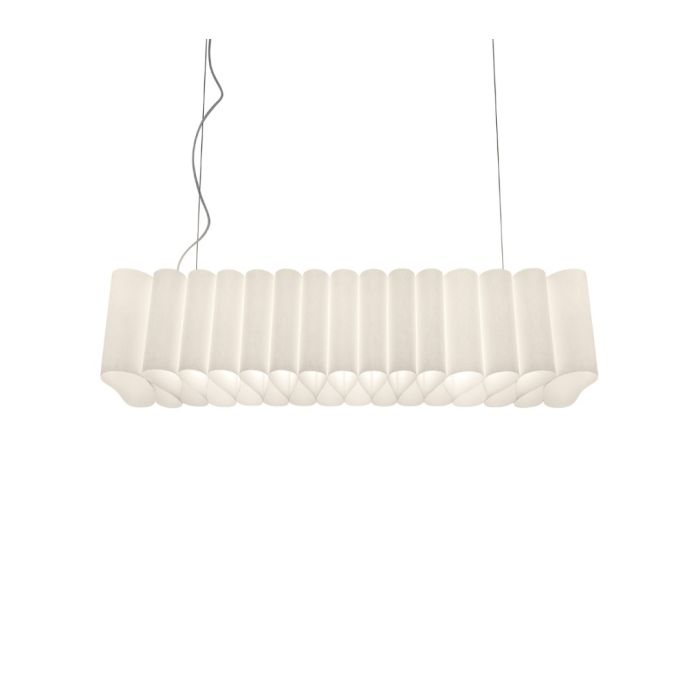 With its soft folds and draping suggesting the lightness of a dress, Pli stems from a gestural approach, similar to that of a seamstress. A thin sheet of fine Italian paper is crossed by a central tube that is the structure and the light source. The lightness of the design and the material come together in a soft glow, free of glare, aimed downward and upward, making this model perfect for lighting a table.