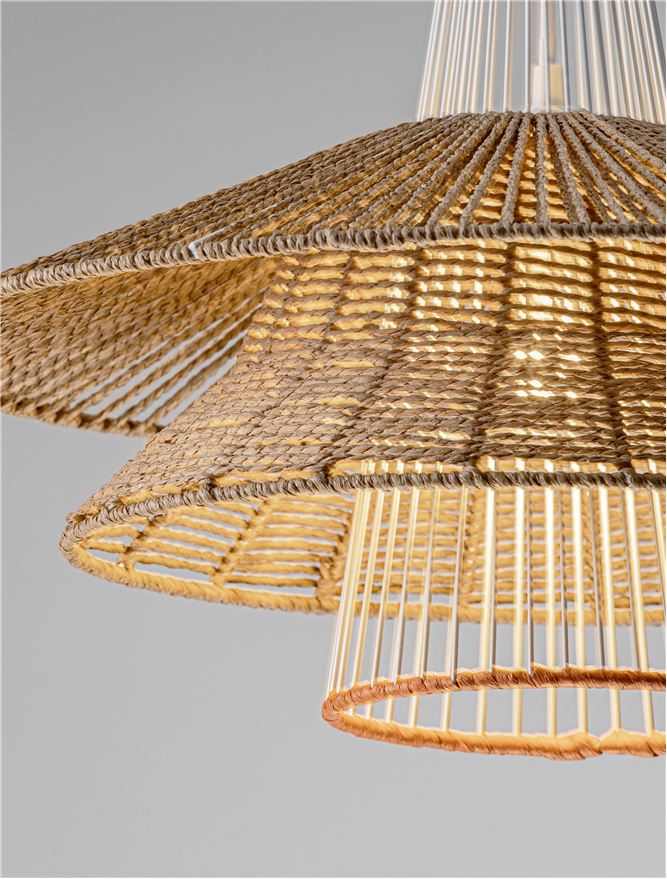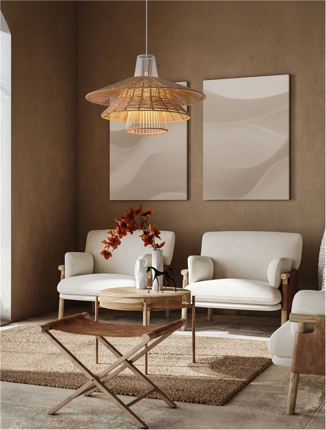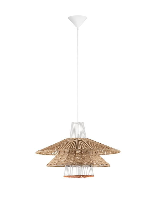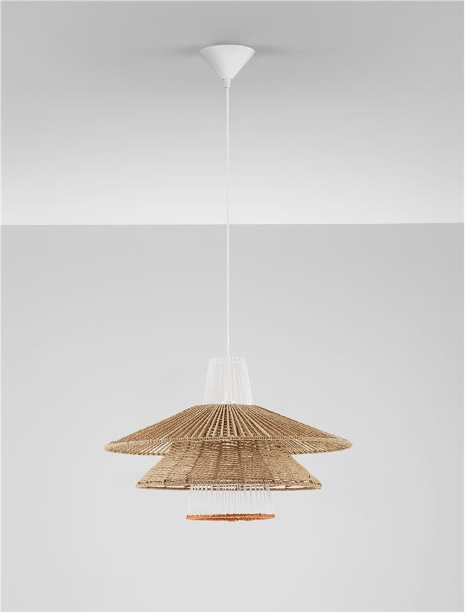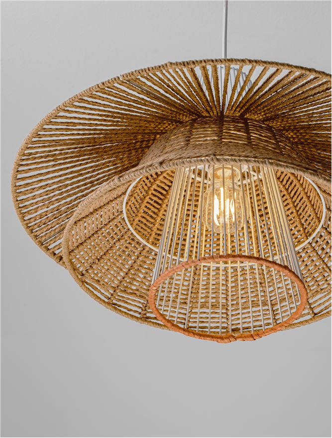 An Natural, organic looking pendant with a large 50cm radius and a smart Sandy white steal conical ceiling rose.