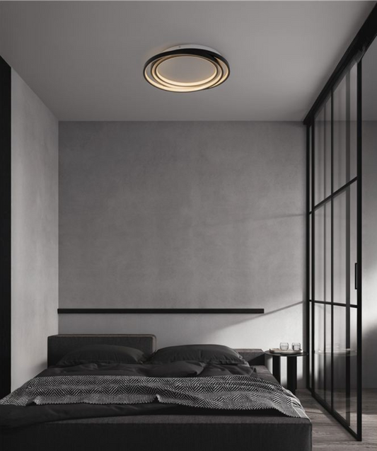 NL Arbir Matt Black Aluminium & Acrylic 3 Ring Semi Flush Ceiling Light Large - ID 13796