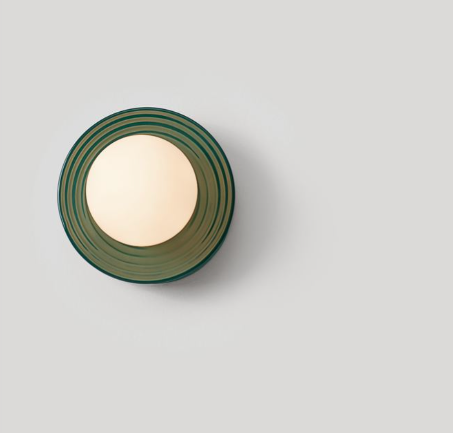 NL Orbi Small Bathroom Wall or Ceiling Light in Green Porcelain with Opal Glass IP44 - ID 13759.