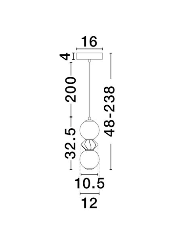 Diameter 12cm x Height 32.5cm x min-maximum height 48-238cm (height adjustable at time of installation).