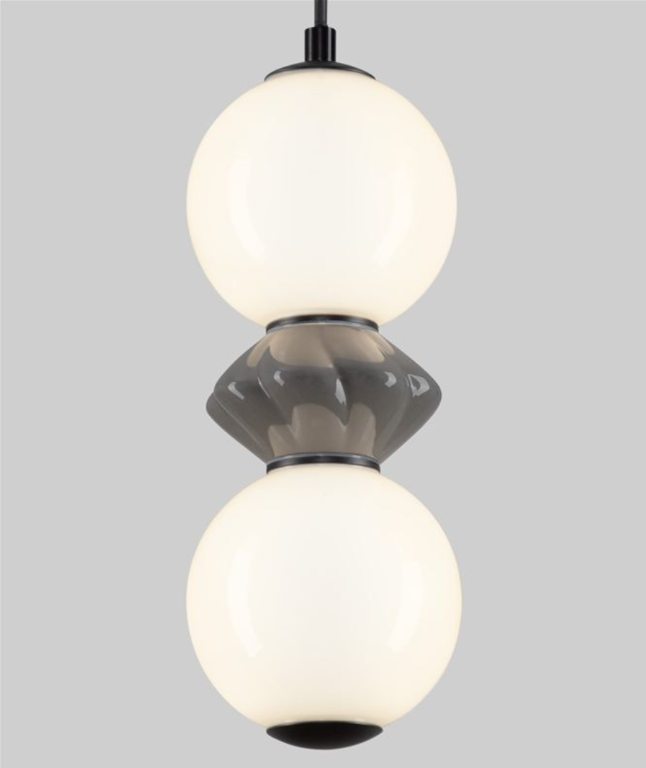 NL Pallin Dark & Light Grey Ceramic & Opal Glass Tall Pendant - ID 13849