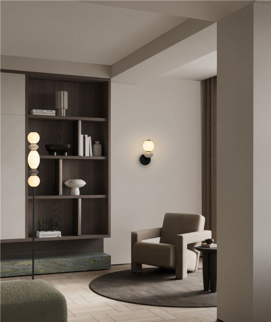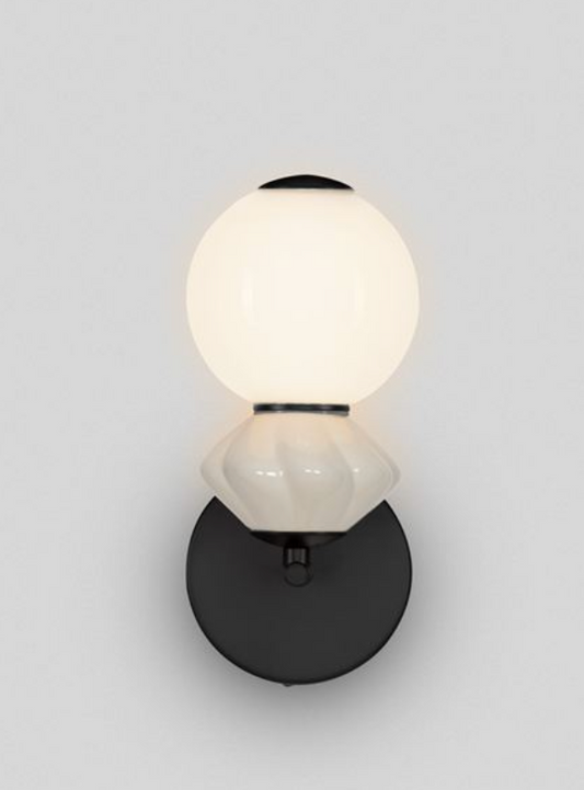 NL Pallin Light Grey Ceramic & Opal Glass Wall Light - ID 13853