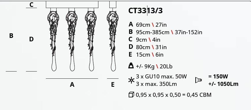 Serip Liquid 3 Lamp Bespoke Chandelier
