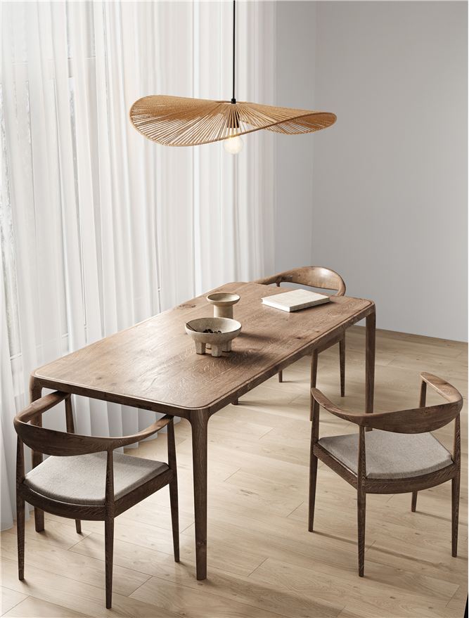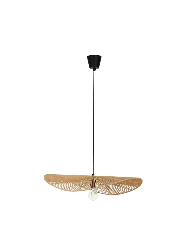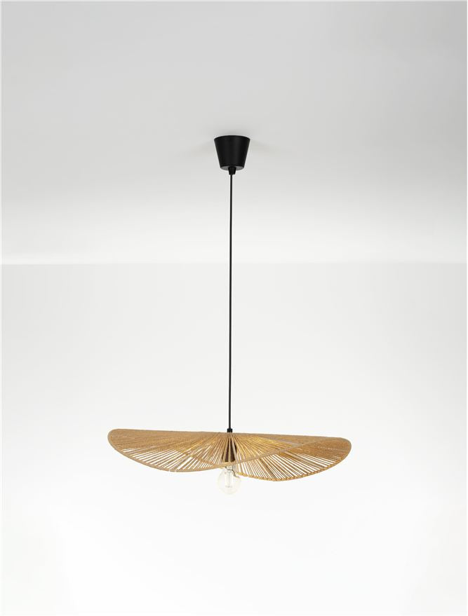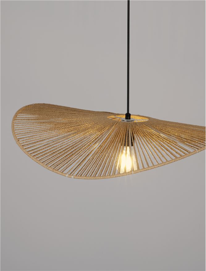 A Natural, organic pendant made from parer rope with a smart Sandy black steal conical ceiling rose.